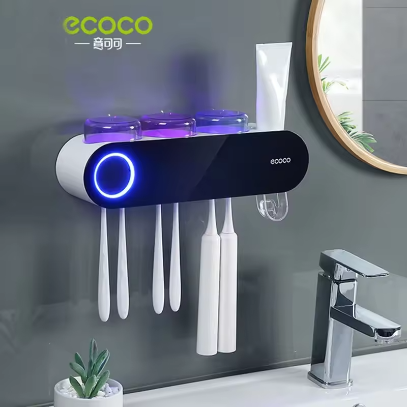 حامل فرش الأسنان الذكي مع تعقيم بالأشعة فوق البنفسجية وموزع معجون